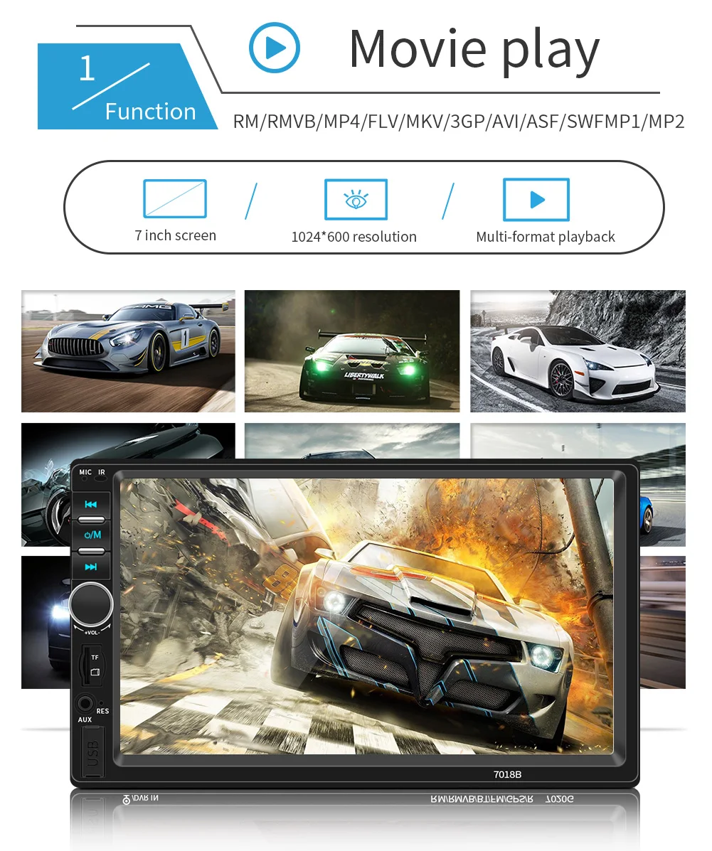 Auto Electronics 7inch Touch screen Double 2 DIN Car Radio Stereo Video MP5 USB/AUX/FM Player 7018B para coche Carro